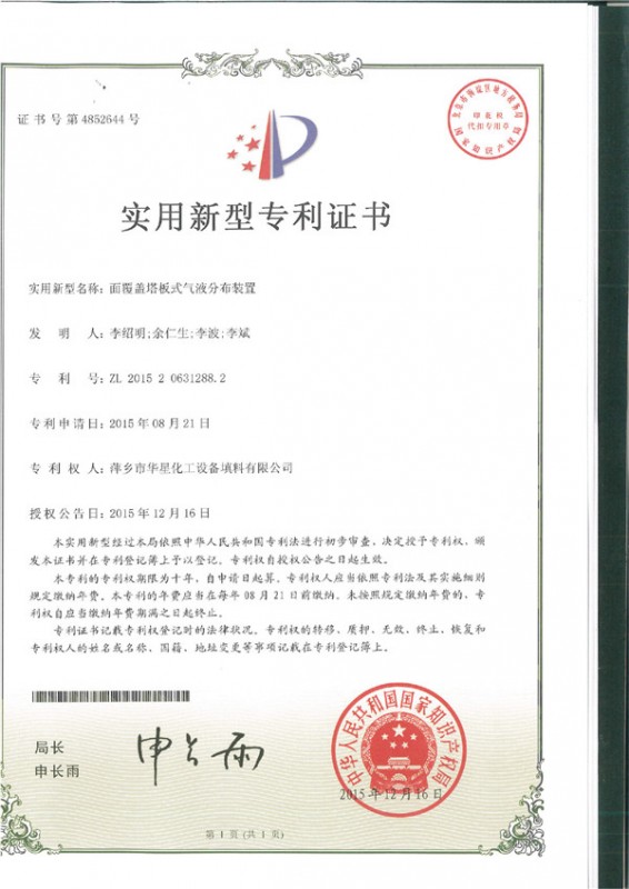 - 面覆蓋塔板式氣液分布裝置-實(shí)用